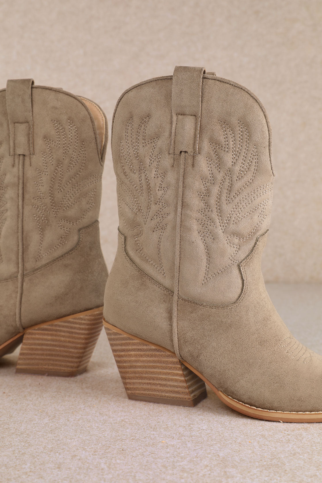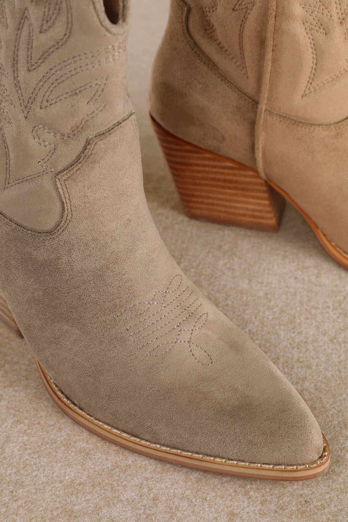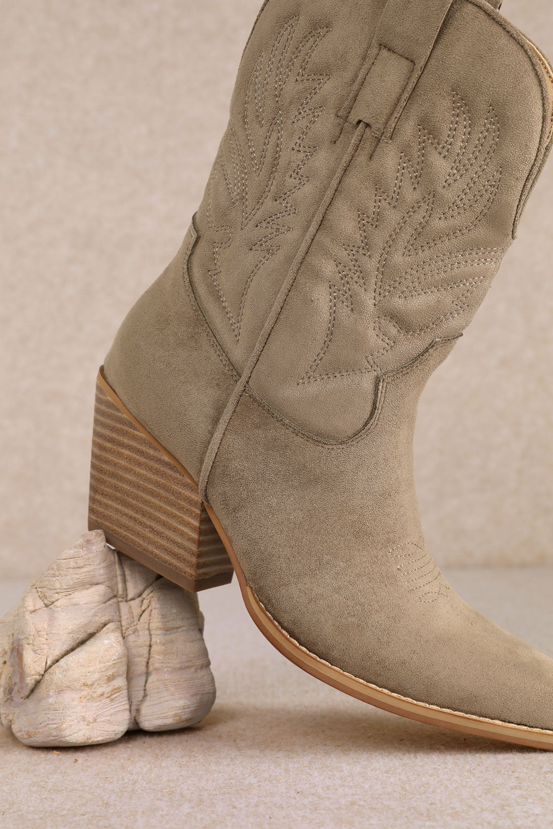 Effortless and timeless, the Nicole Boot brings Western heritage into modern style. Crafted in soft sand suede with classic stitching, this mid-height design is the perfect balance of casual ease and refined charm.