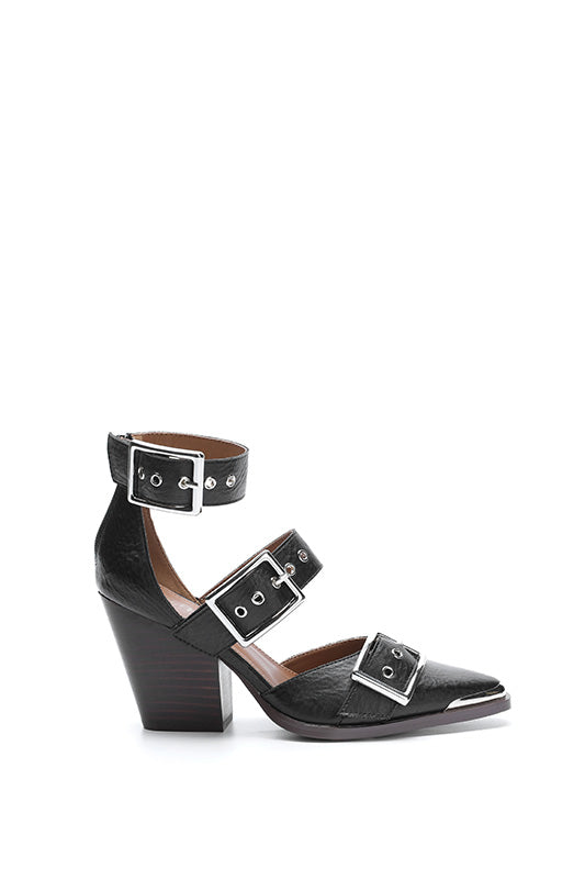 Elevate your style with the HENDRIX - Pointed Toe Hollow Out Stiletto Sandals by Mi.iM. Crafted from premium leather with sleek metal fasteners, these bold stiletto sandals blend gothic elegance with sexy sophistication. Perfect for making a statement at any event.