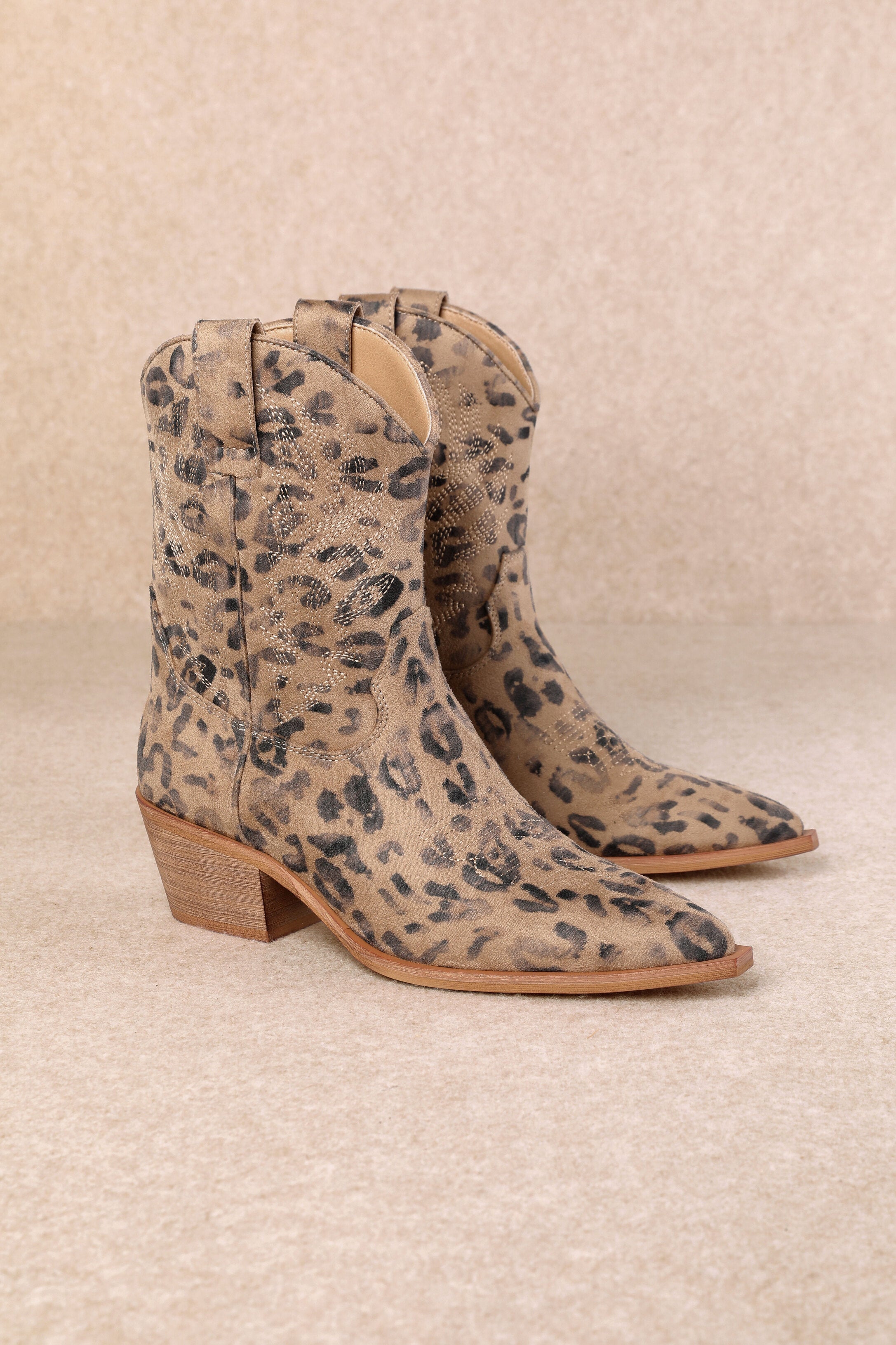 Las botas Claire Western Luxe Kinsey, confeccionadas con cuero vegano de primera calidad con delicados bordados, añaden glamour occidental a faldas, vestidos y más.