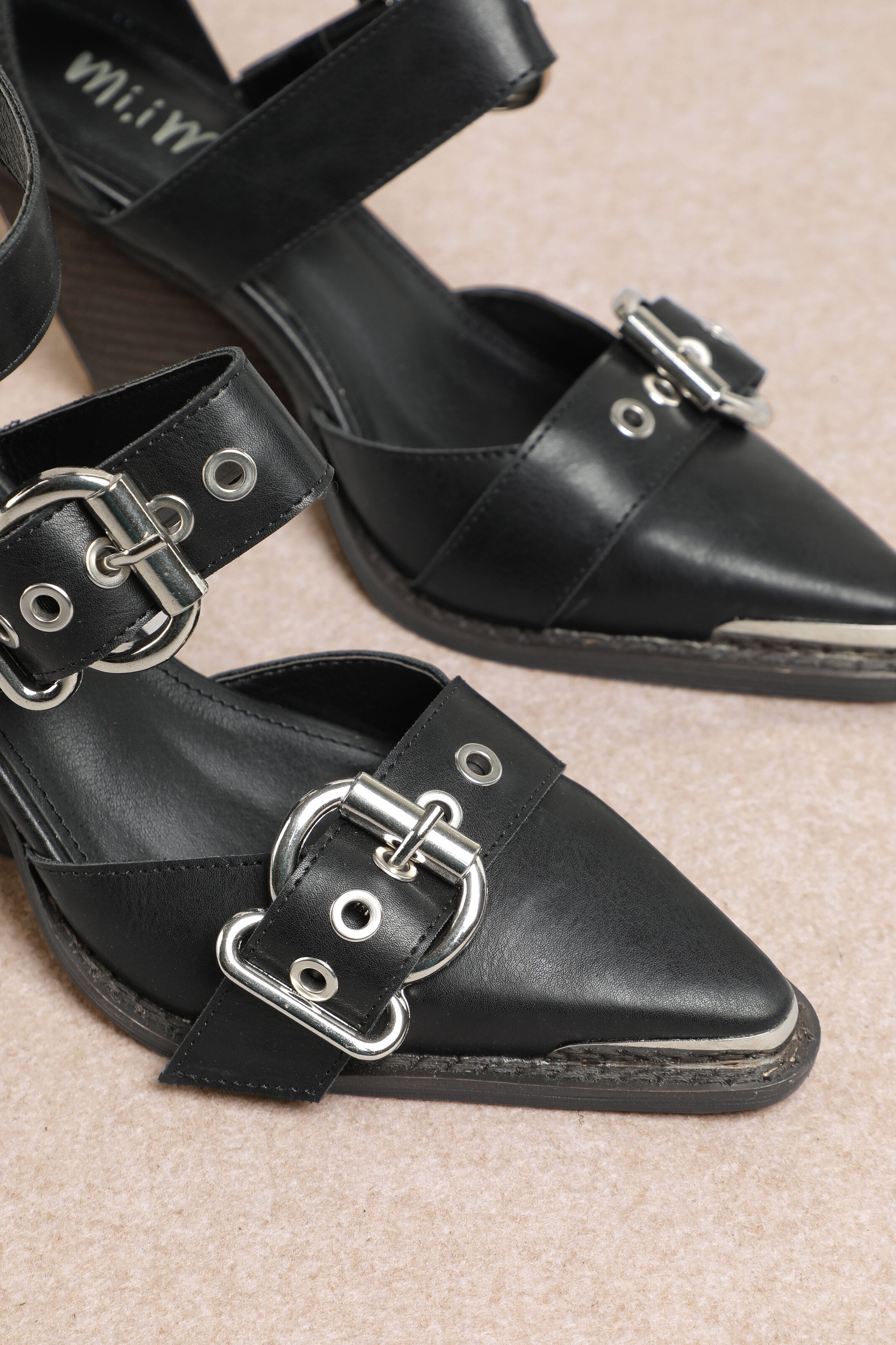 Elevate your style with the HENDRIX - Pointed Toe Hollow Out Stiletto Sandals by Mi.iM. Crafted from premium leather with sleek metal fasteners, these bold stiletto sandals blend gothic elegance with sexy sophistication. Perfect for making a statement at any event.